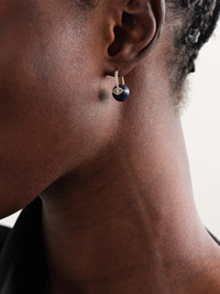 Sydney Evan continually works to find new and interesting ways of incorporating spiritual talismans into its pieces. Made from 14-karat gold, these sapphire earrings are adorned with dainty diamonds arranged in an evil eye motif - a symbol that's believed to have protective qualities.