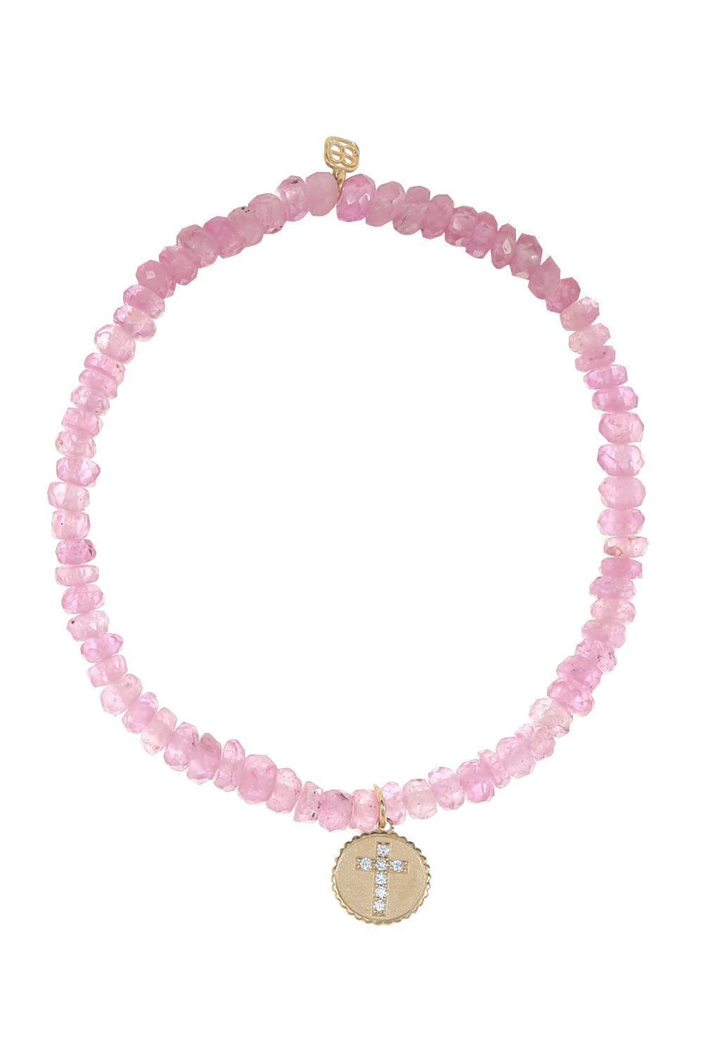 DETAILS AND INSIGHT Sydney Evan cross coin pink sapphire charm bracelet in yellow gold. 14K Yellow Gold Pink Sapphire, Diamonds 4mm Style CKE2106-Y7.4