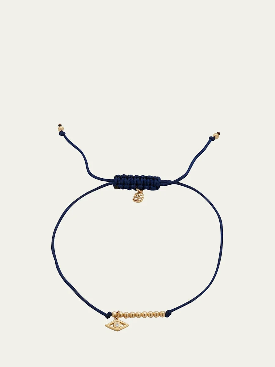Sydney Evan pull-cord bracelet. 14-karat gold beads and charms. Evil eye charm with diamond bezel. 0.005 total diamond carat weight. Approx. 6.25" circumference. Adjustable; puller closure. Online Inquiries: BGS21_Y5CEW| Store Inquiries: #3667523