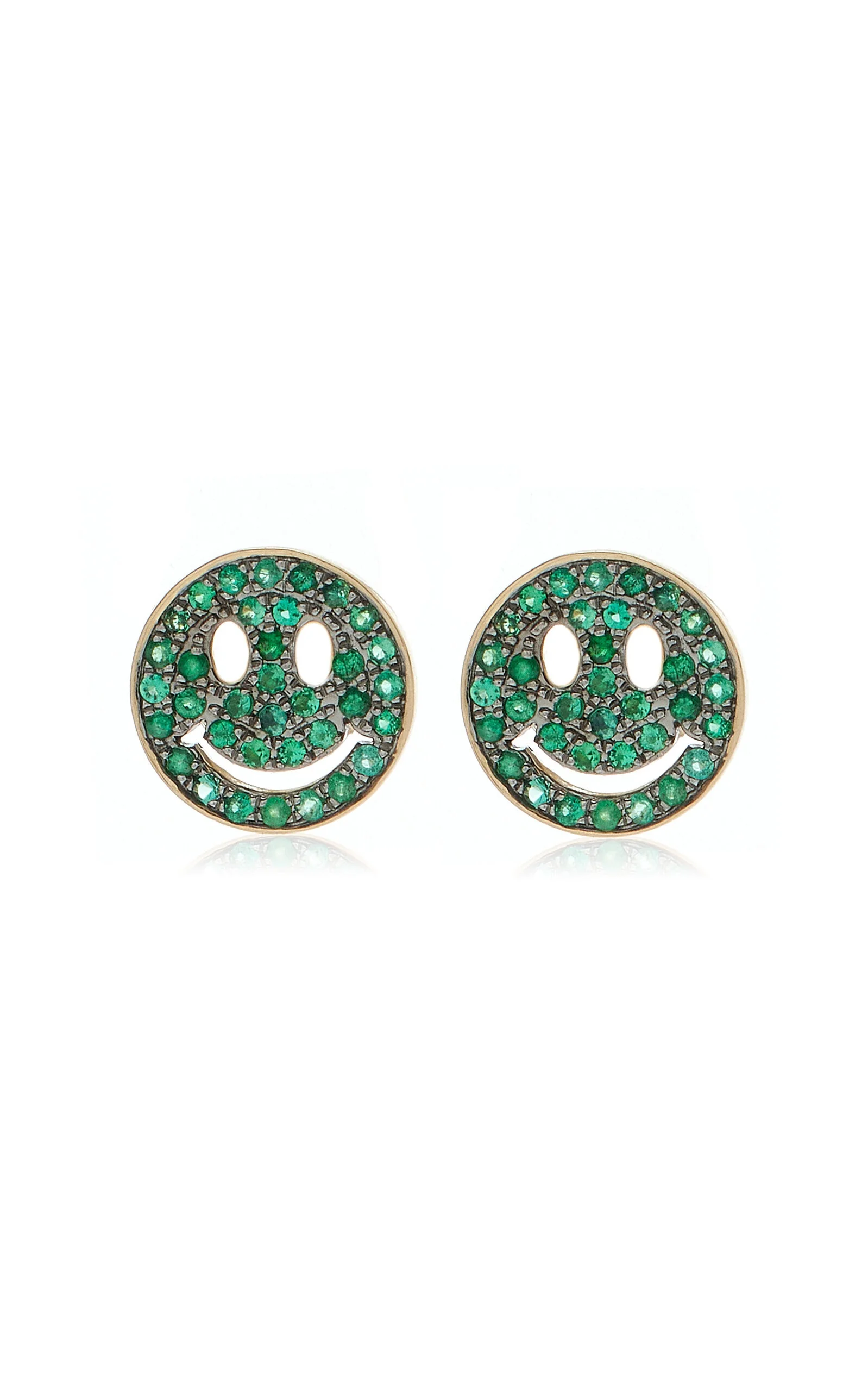 Happy Face 14K Yellow Gold Emerald Earrings green
