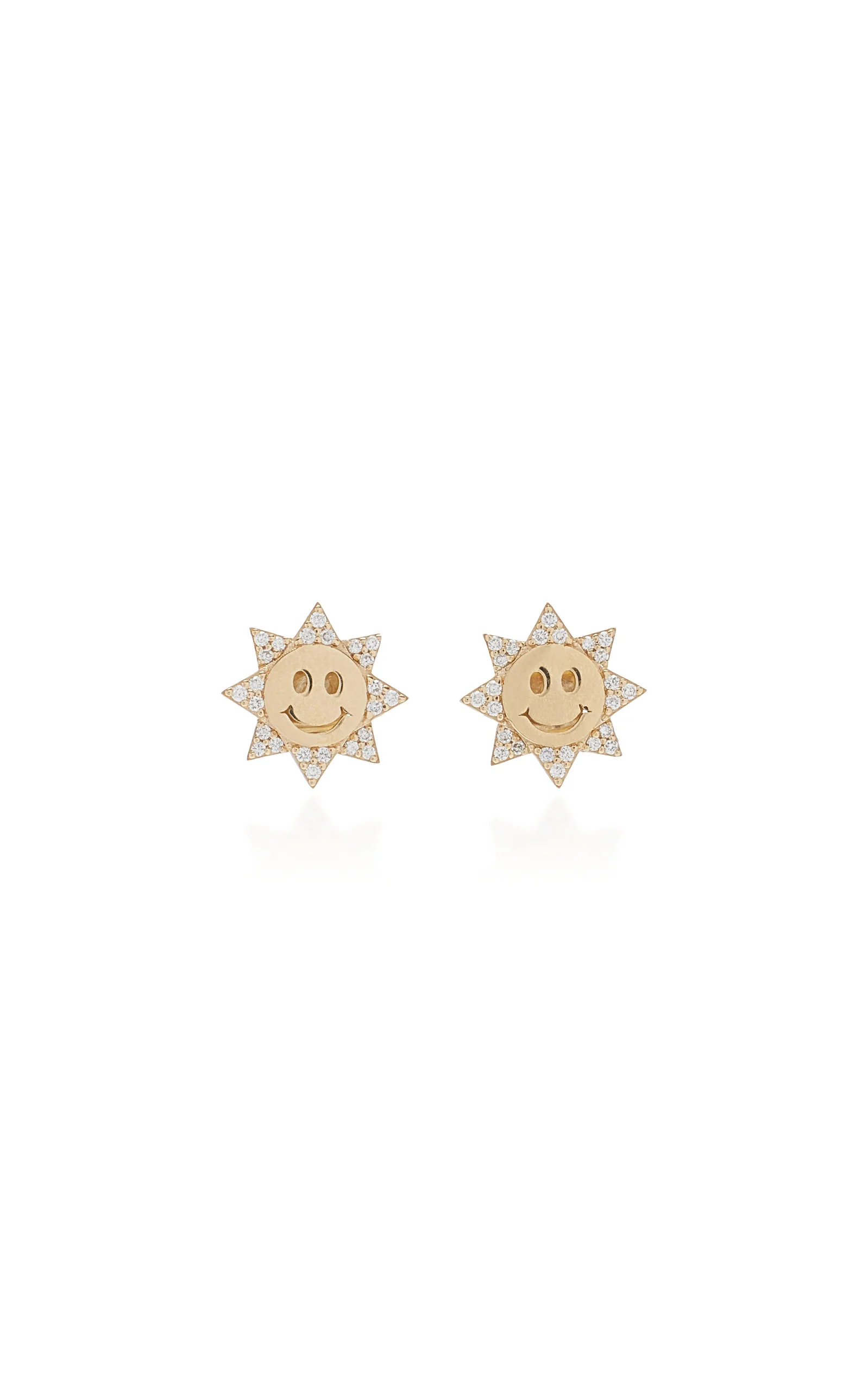 Happy Face Sun 14K Gold Diamond Stud Earrings gold