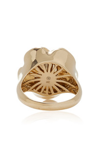 Since 2001, L.A. designer Rosanne Karmes has captured a blend of whimsy and spirituality that’s made her an A-list favorite. In this selection, find playful spins on charms and motifs that are said to inspire happiness and protection. This ring features a rose cast from 14k yellow gold bezel-set with a pink sapphire center stone. PRODUCT DETAILS - Composition: 14k yellow gold 13.37g, pink sapphire 0.101ct - Imported - Please note the possibility of natural inclusions in gemstones SIZE & FIT - This item measures 1 x 0.75"