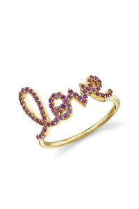 DETAILS AND INSIGHT Sydney Evan large amethyst love script ring. 14k Yellow Gold 62 Brilliant Round Cut Diamonds, .31ct 1/2"H x 3/4"W Style RJP1427AM-Y