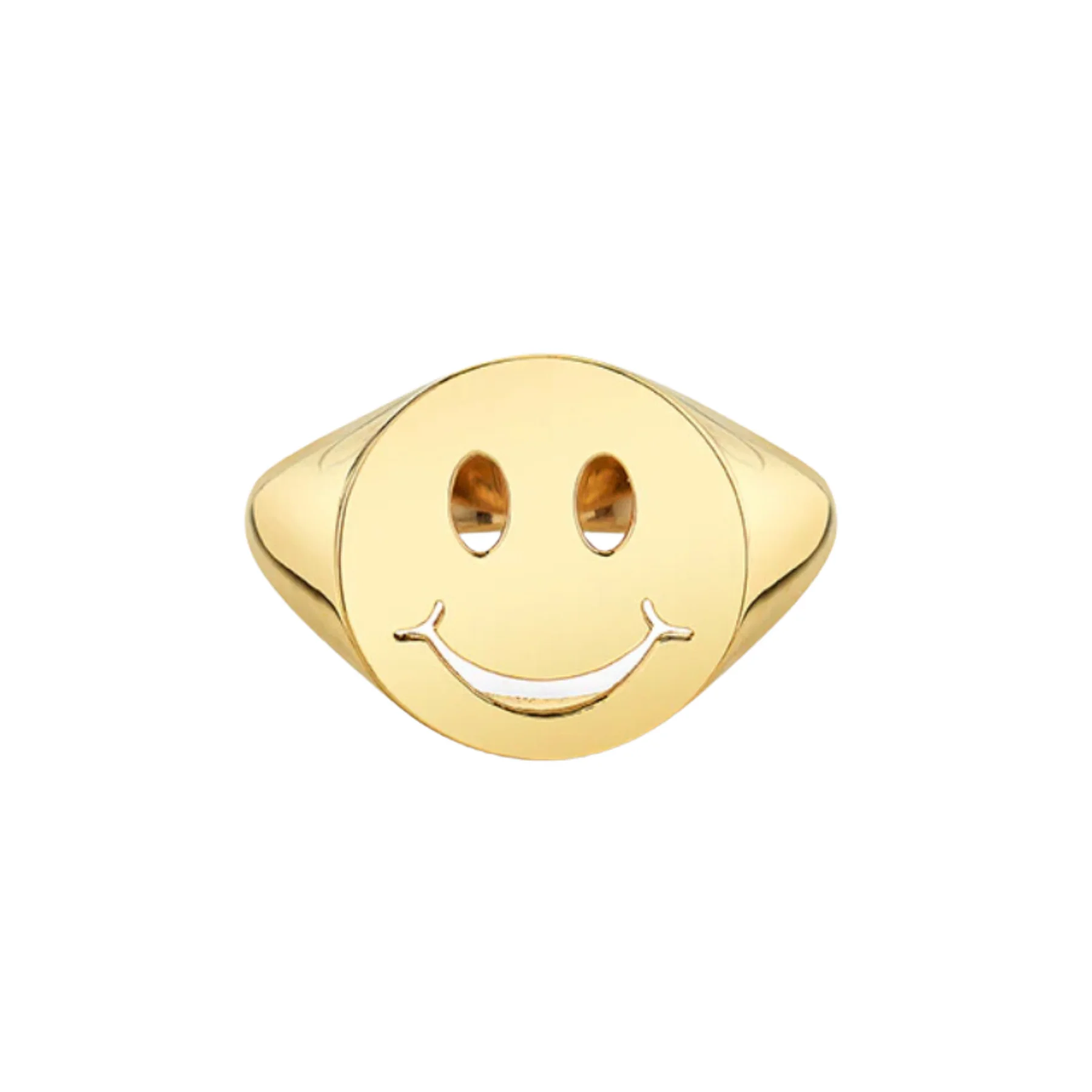 Smile! 14k yellow gold happy face signet ring. 14k gold band. The happy face measures appx. 1/2" in diameter.14K yellow gold with a polished finish. Size is 6.5