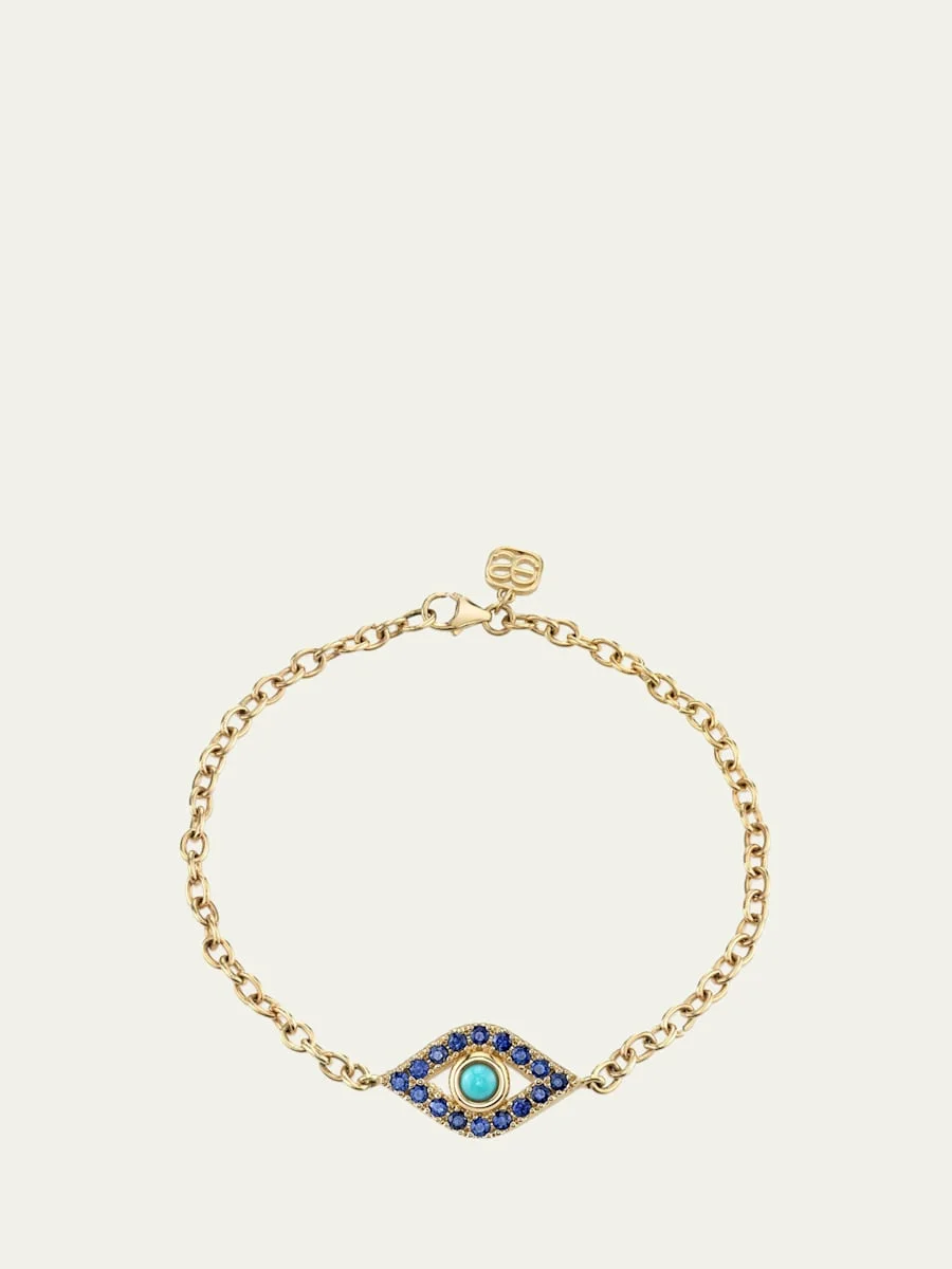 Sapphire & Turquoise Evil Eye Chain Bracelet