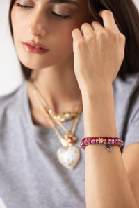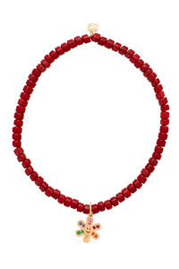 DETAILS AND INSIGHT Sydney Evan small daisy happy face heishi charm bracelet in yellow gold. 14K Yellow Gold Heishi, Rainbow Gemstones Style CKE1864MC-Y873.4