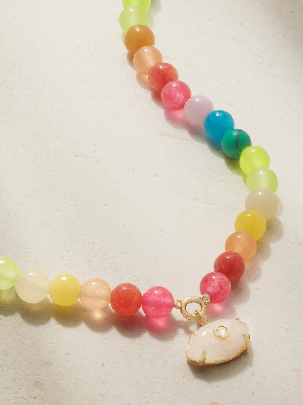 Sydney Evan's LA style is brought to life in this colorful necklace. Crafted from 14-karat gold, it's strung with rainbow jade beads and a moonstone evil eye pendant that sparkles with a single diamond. The 3-inch chain extender means you can wear it at whatever length feels right.