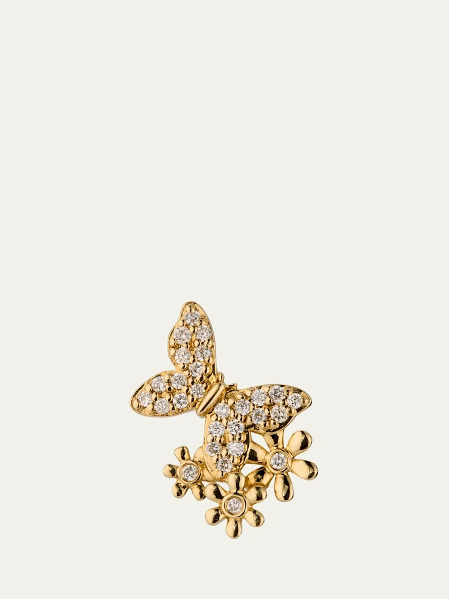 Sydney Evan combines a butterfly motif and a trio of daisies on this single stud earring, adorned with diamond pave and bezels. Polished 14karat yellow gold 27 diamonds; 0.08 total carat weight For pierced ears Sold individually Left ear specific Imported