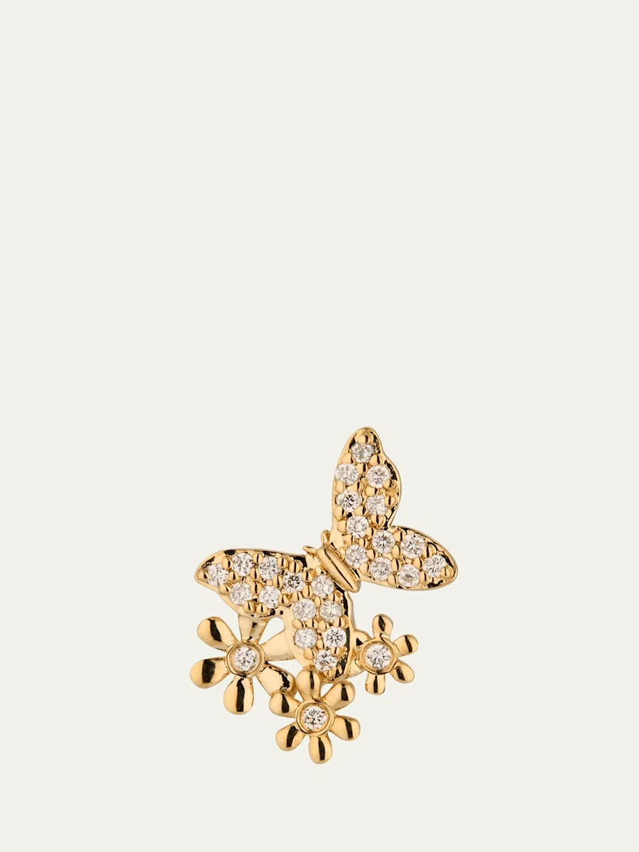 Sydney Evan combines a butterfly motif and a trio of daisies on this single stud earring, adorned with diamond pave and bezels. Polished 14karat yellow gold 27 diamonds; 0.08 total carat weight For pierced ears Sold individually Right ear specific Imported