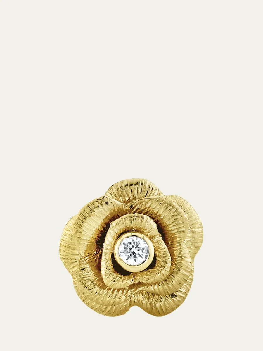 Sydney Evan rose stud earring. 14-karat yellow gold hardware. Rose bud with bezel-set diamond. 0.02 total diamond carat weight. Post back for pierced ears. Sold individually. Imported. Item Note: Sold as a single earring. Online Inquiries: BGS21_Y5538| Store Inquiries: #3396871