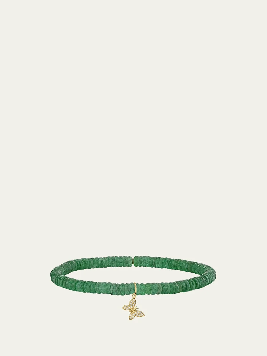 Strung with aventurine beds, this Sydney Evan stretch bracelet is finished with a diamond pave butterfly charm. Polished 14karat yellow gold Diamond total carat weight: 0.11 Stretchy; slipon style Imported