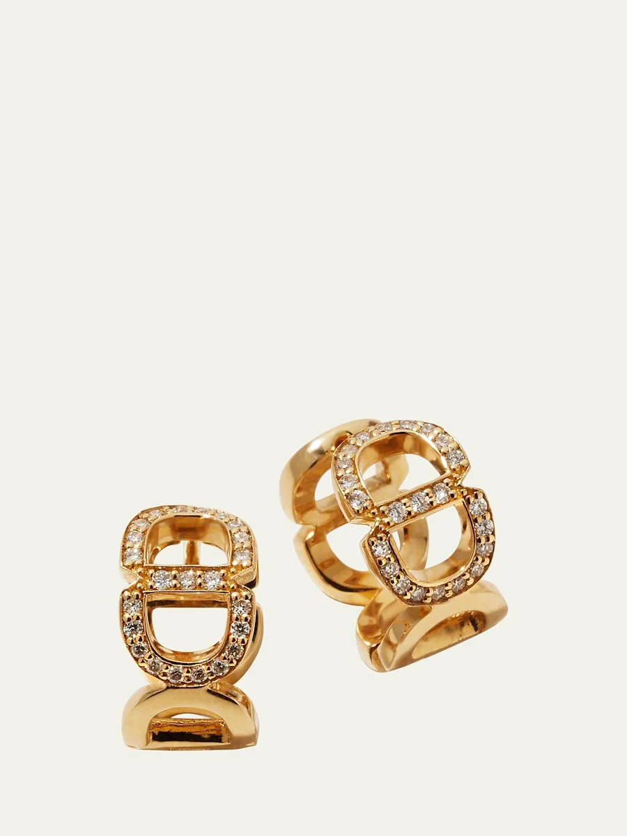 Sydney Evan chainlink huggie earrings. Polished 14karat yellow gold hardware. Pave with brilliant white diamond rounds. 0.18 total diamond carat weight. Post backs for pierced ears. Approx. 3/8"L x 1/4"W. Imported.