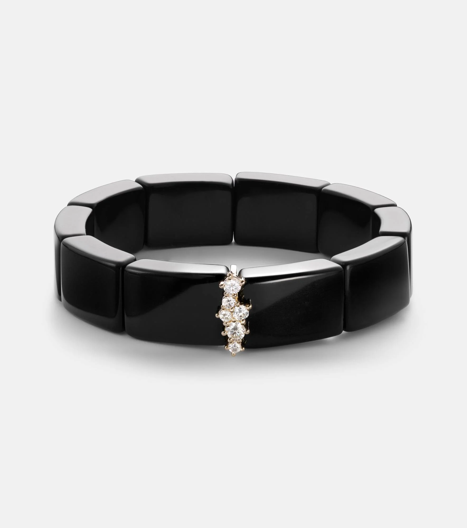 Turn to LA-based Sydney Evan for outfit-completing fine-meets-fashion jewelry that you’ll never want to take off. Made from 14kt yellow gold, this bracelet has a black onyx and 6 shimmering diamonds. Product Details - Material: 14kt yellow gold - Made in Thailand - Item color: gold - Stone I: 6 diamonds, 0.374ctw, prong setting, H color grade, I color grade - Stone II: onyx - Item number: P01121871 Size & Fit - Max. width 14mm-0.55" - Circumference 16cm-6.5" - Elasticated band