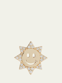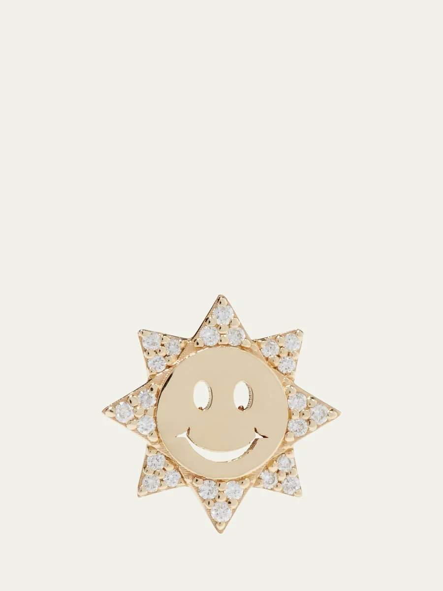 Sydney Evan happy sun stud earring. Polished 14-karat yellow gold hardware. Happy face with 24 diamond pave trim. 0.09 total diamond carat weight. Post back for pierced ears. Approx. 3/8" diameter. Online Inquiries: BGS21_Y58KZ| Store Inquiries: #3313383