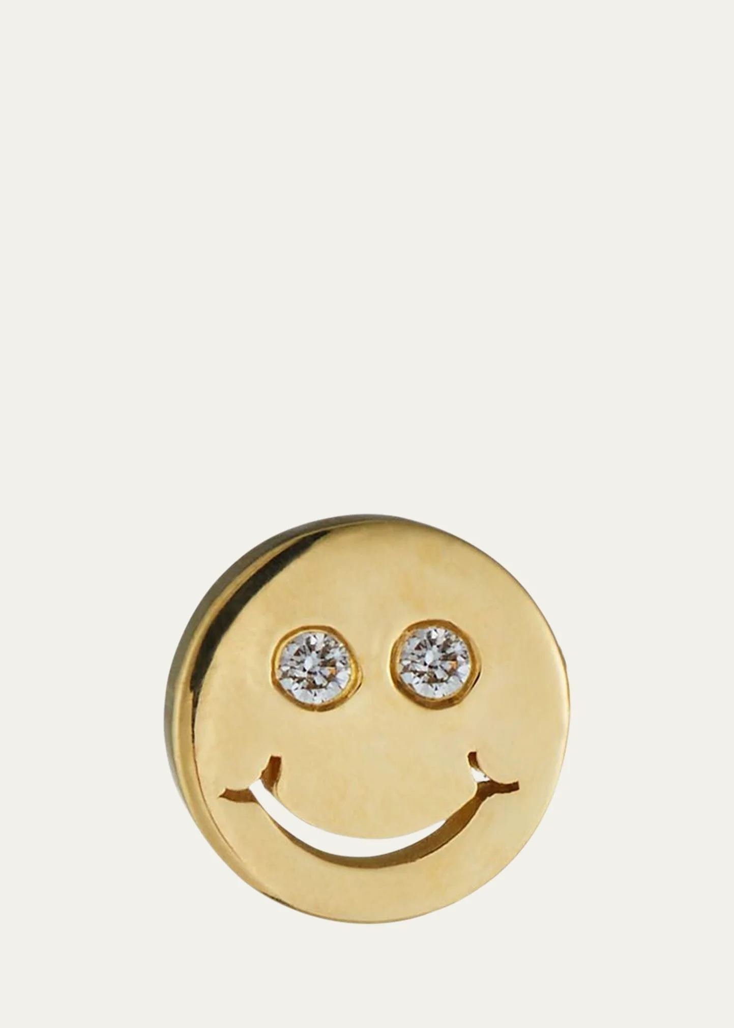 Sydney Evan happy face earring. 14-karat yellow gold hardware. Happy face with two diamonds. 0.01 total diamond carat weight. Post back for pierced ears. Sold individually. Imported. Item Note: Sold as a single earring. Online Inquiries: BGS21_Y5KGB| Store Inquiries: #4070429