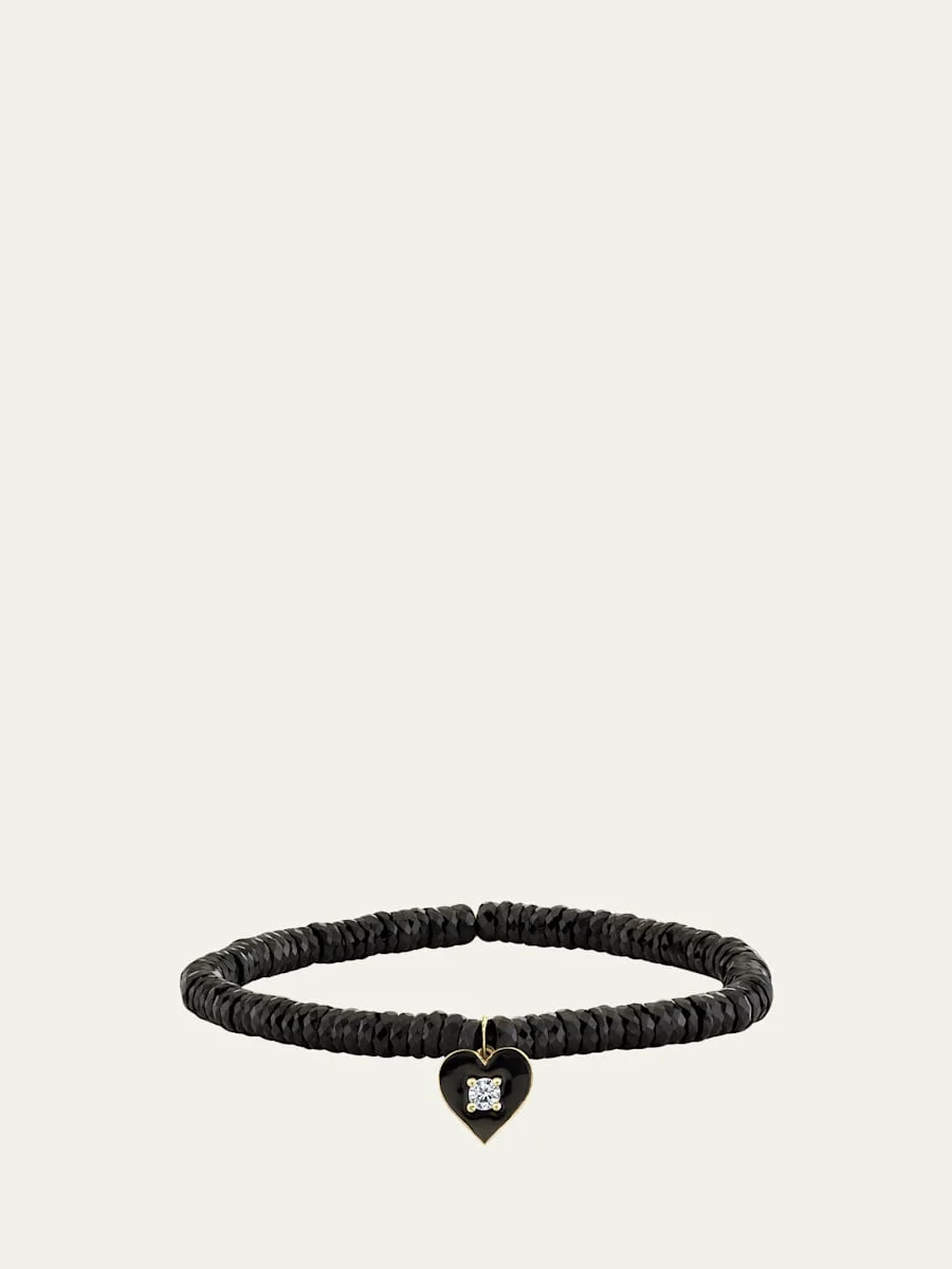 Defined by one diamond on a heartshaped charm, Sydney Evan crafts this signature stretch bracelet with faceted spinel rondelles. Approx. 6.25" circumference Polished 14karat yellow gold 1 diamond; 0.13 total carat weight Faceted black spinel beads Stretchy; slipon style Imported