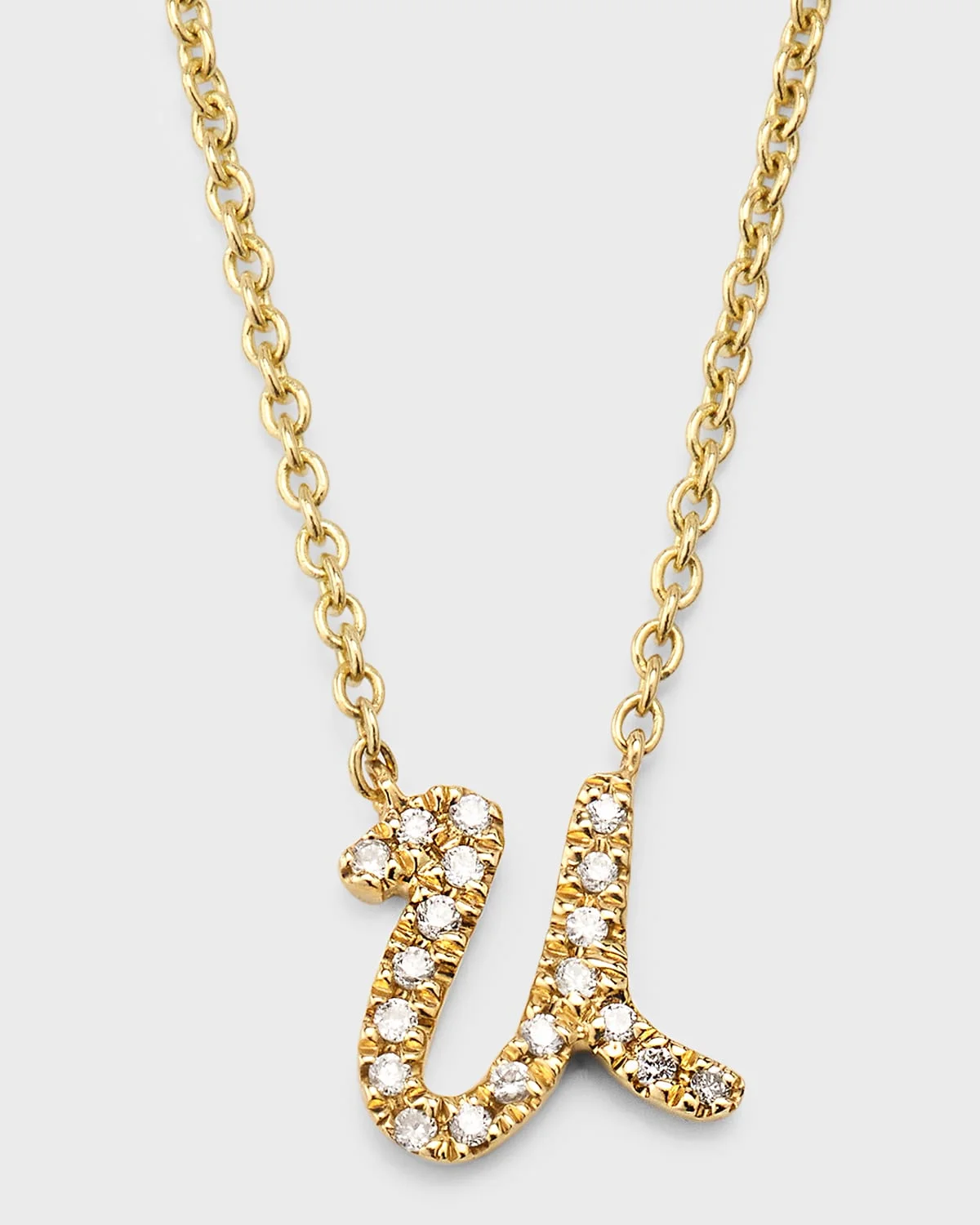 - Sydney Evan necklace - Necklace length: approx. 16-18 inches - 14-karat yellow gold - Integrated initial pendant with H-I diamond pave - Total diamond carat weight: 0.029 - Adjustable length - Lobster clasp - Imported