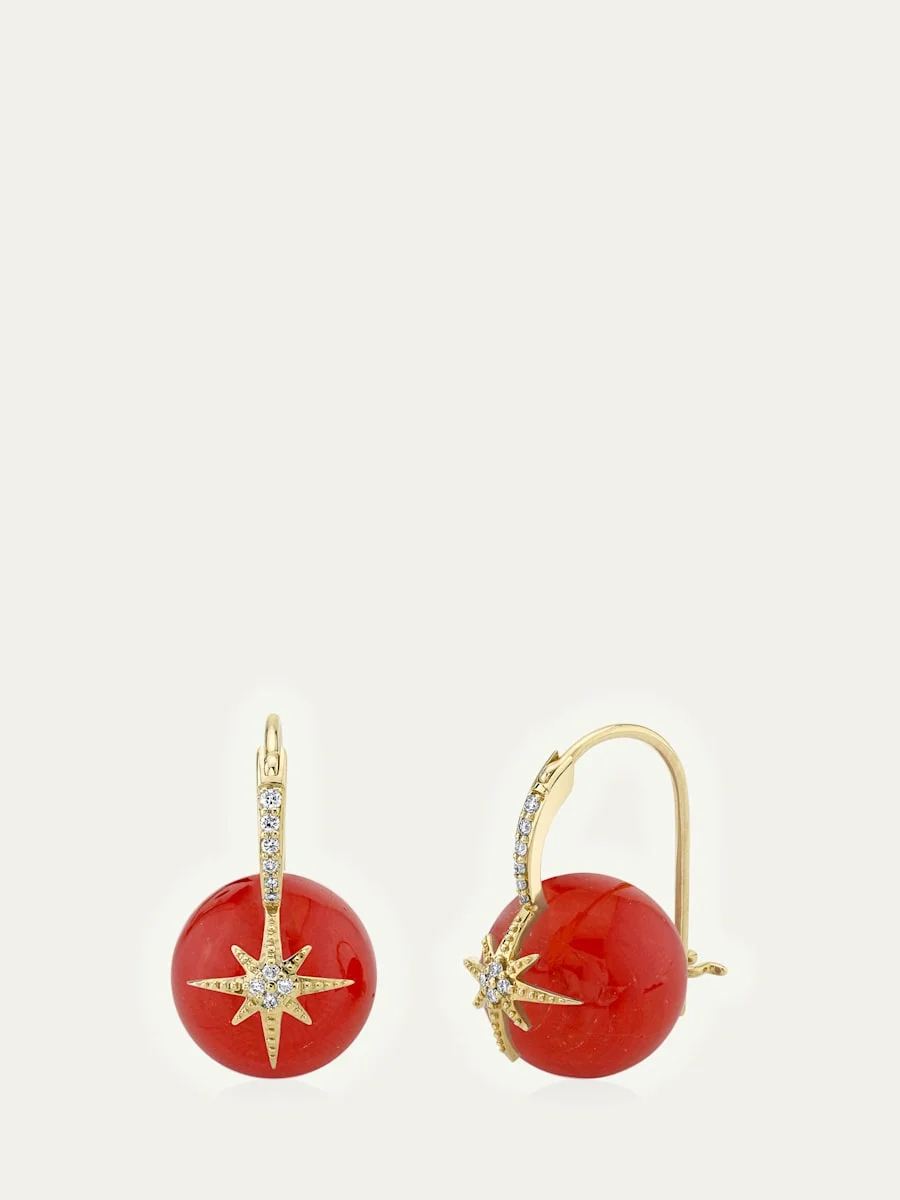 14K Diamond Starburst and Coral Bead Earrings