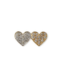 Sydney Evan doubleheart stud earring. Polished 14karat gold yellow hardware. Two hearts with white diamond pave. 0.13 total diamond carat weight. Post back for pierced ears. Approx. 0.5"H; 0.3"W. Sold individually. Imported.