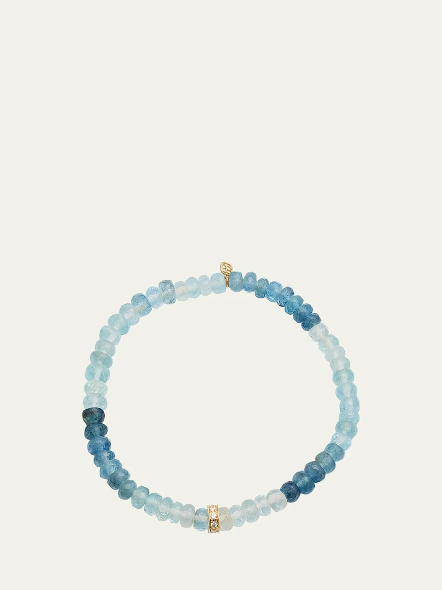 14K Gold 6mm Diamond Rondelle on Aqua Faceted Rondelle Bead Bracelet