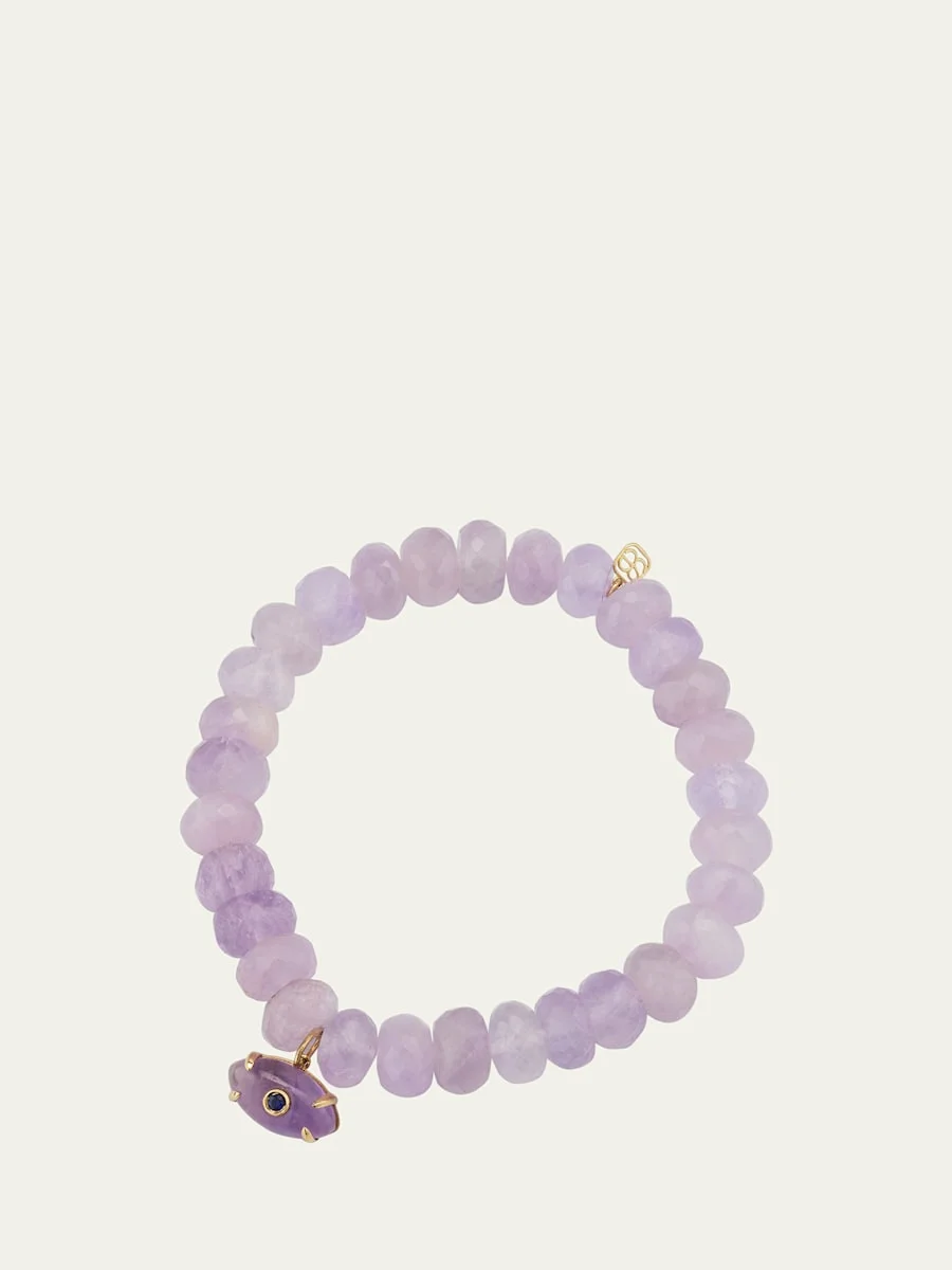 Sydney Evan Evil Eye charm bracelet Approx. 6.25"L 14karat yellow gold spacer and hardware Sapphire; 0.04 total carat weight Faceted amethyst rondelles Spot clean Imported