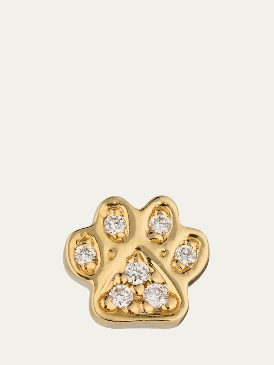 14K Gold & Diamond Mini Paw Stud Earring, Single