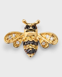 Sydney Evan single mini bee stud earring. Polished 14karat yellow gold hardware, Twotone diamond and sapphire pave. 0.02 total yellow sapphire carat weight. 0.02 total white diamond carat weight. 0.04 total black diamond carat weight. Post backs for pierced ears. Sold individually. Imported.