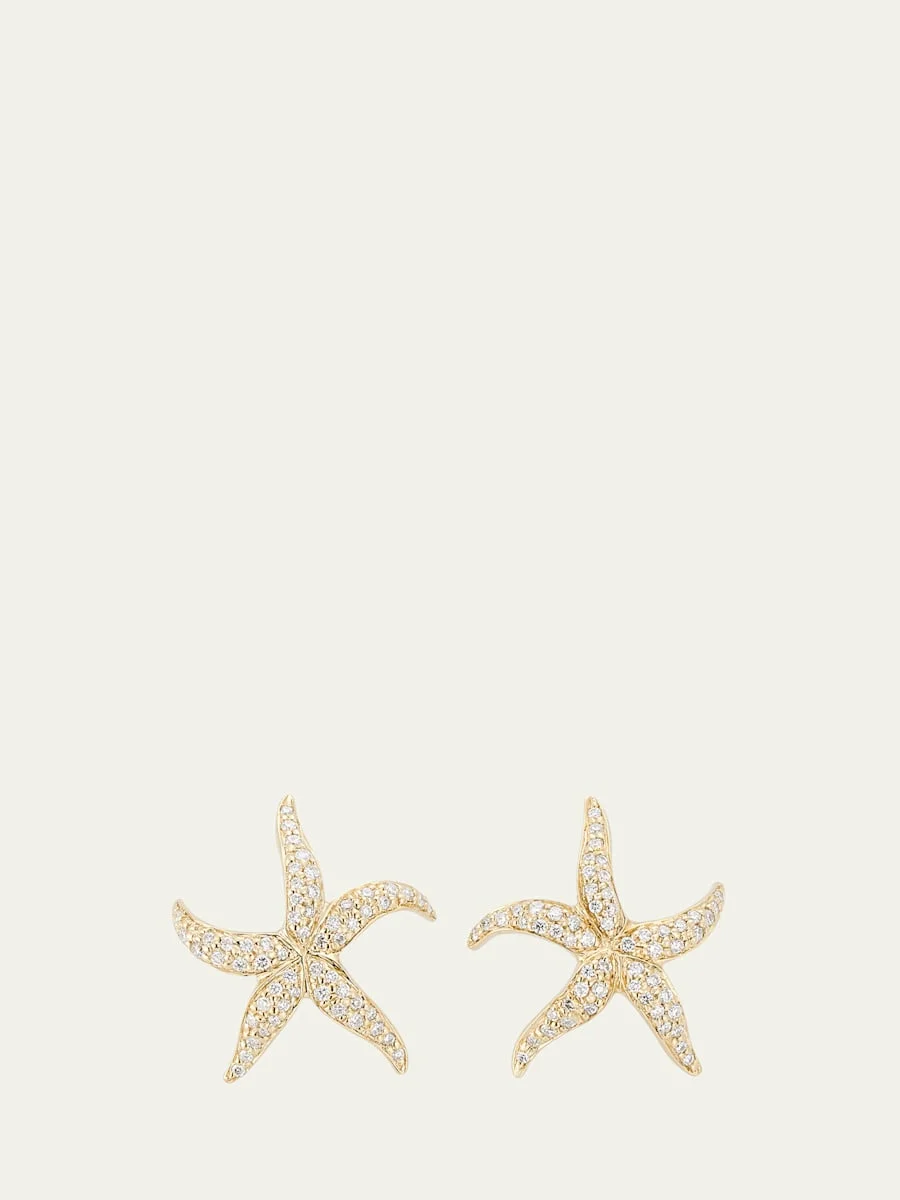 These starfishinspired earrings are adorned with precious diamonds from Sydney Evan's jewelry collection. Polished 14karat yellow gold 114 paveset brilliant diamonds Diamond total carat weight: 0.68 For pierced ears Imported