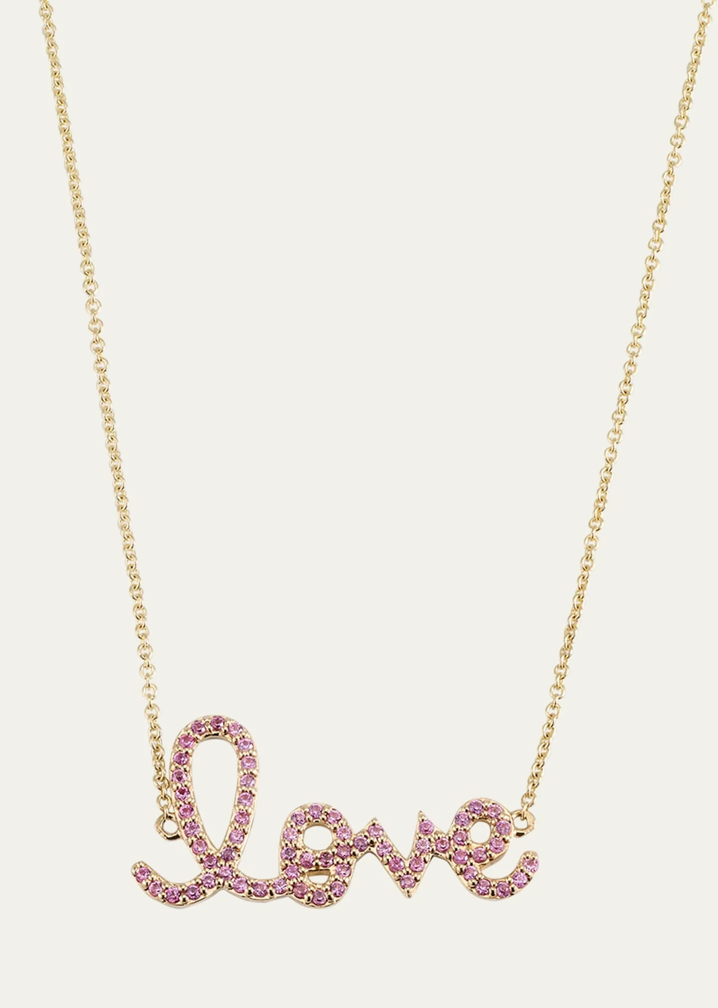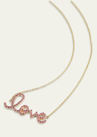 14K Gold Medium Love Script Pink Sapphire Necklace