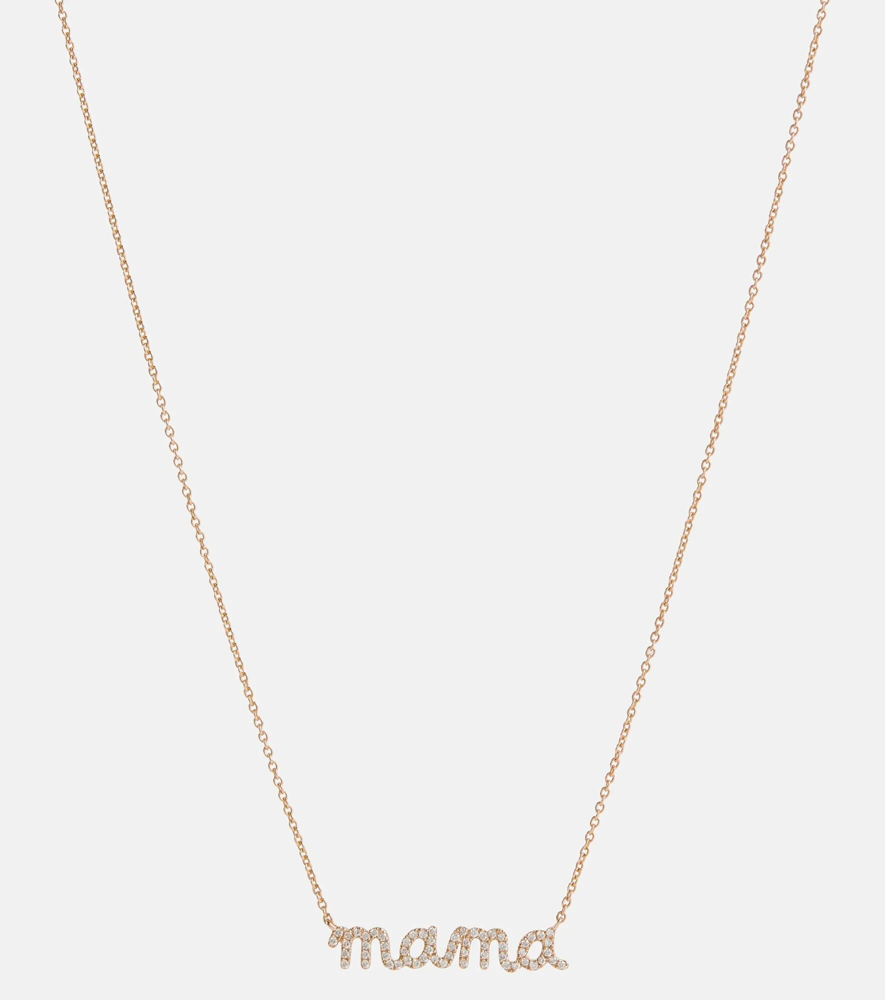 Hanging from an adjustable 18" chain, this necklace from Sydney Evan features a 'Mama' plaque in the label's signature hand-drawn script. Made in the USA from 14kt yellow gold, it's encrusted with pavé diamonds. Product Details - Material: 14kt yellow gold - Made in Hong Kong - Stone I: diamonds - Closure: lobster-clasp fastening - Designer color name: Gold - Item number: P00629770 Size & Fit - Adjustable length - Length when open 46cm-18" - Min. width 1mm-0.05" - Pendant length 23mm-0.9" - Pendant width 5mm-0.2"