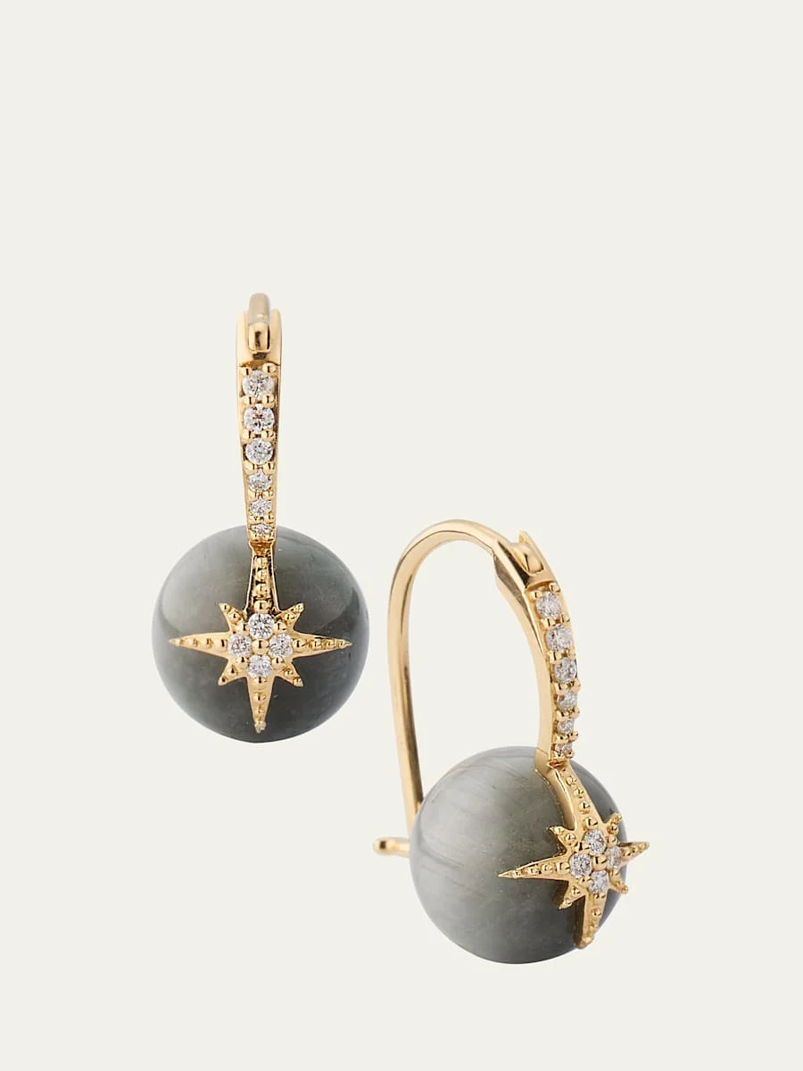 These grey cat's eye earrings from Sydney Evan depict a shimmering starburst with H-I brilliant-cut diamonds. Approz. 8mm beads Polished 14-karat yellow gold Pave-set white diamonds 0.09 total diamond carat weight Please use caution when applying hairsprays, lotions, colognes, and perfumes. For pierced ears Imported Online Inquiries: BGS21_Y7QDA| Store Inquiries: #5076718