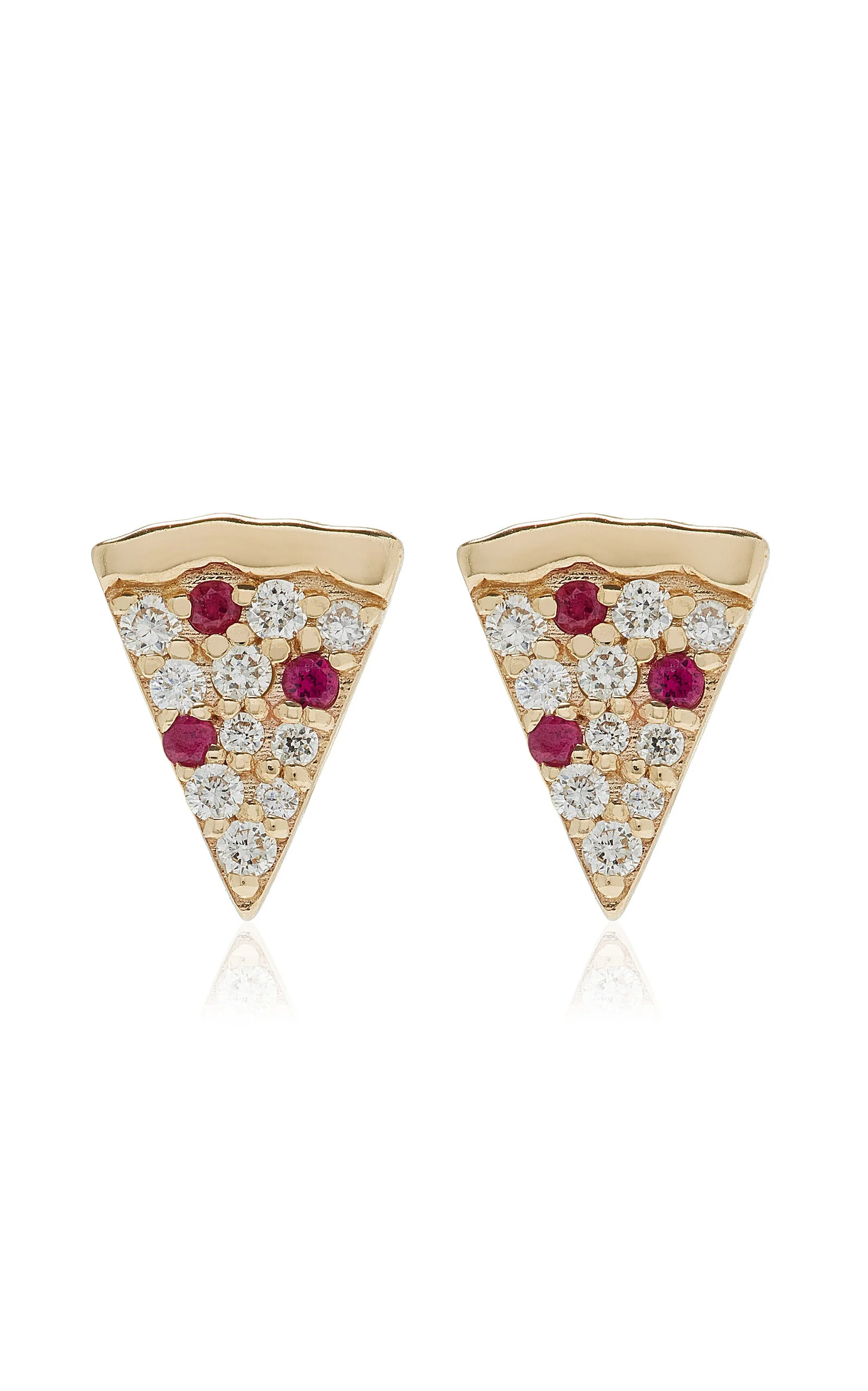 Since 2001, L.A. designer Rosanne Karmes has captured a blend of whimsy and spirituality that’s made her an A-list favorite. In this selection, find playful spins on motifs and charms that are said to inspire happiness and protection. PRODUCT DETAILS - Post fastening for pierced ears - Composition: 14k yellow gold, White Diamonds - 0.094Ct; Rubies - Imported - Please note the possibility of natural inclusions in gemstones