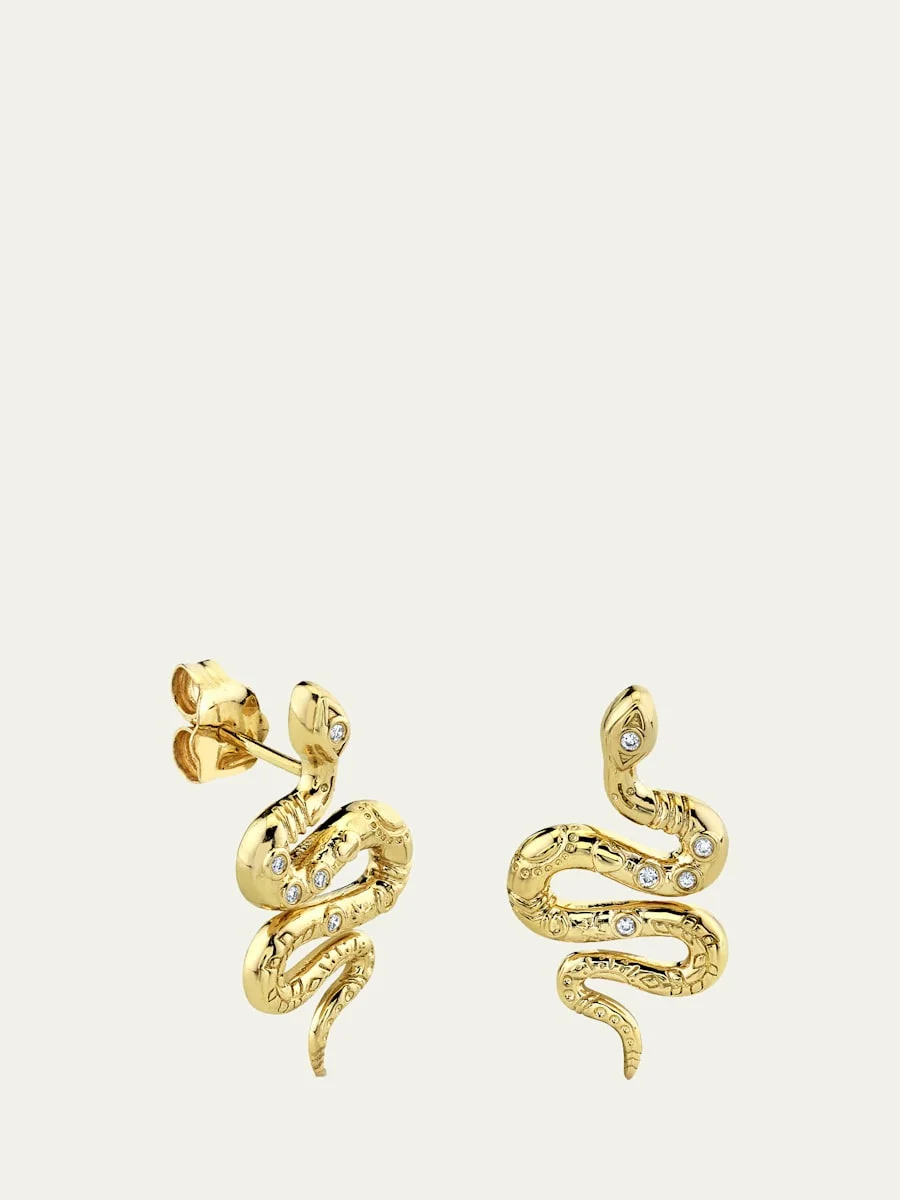 Sold as a single stud, this Sydney Evan earring coils with a snake silhouette and white diamonds. Approx. 7/8"H x 1/2"W Polished 14karat yellow gold Diamond total carat weight: 0.6 For pierced ears Sold individually Imported