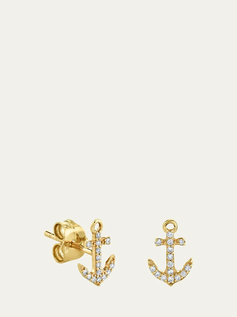 Sydney Evan anchor stud earrings 14-karat solid yellow gold Round white diamonds Diamond carat weight: 0.045 For pierced ears Butterfly backs Imported Online Inquiries: BGS21_Y5A57| Store Inquiries: #3396869