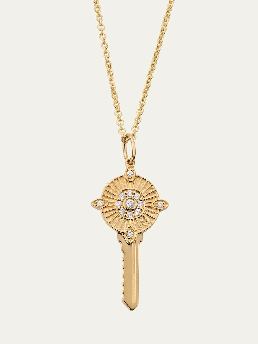 14K Yellow Gold Medium Tiffany Chain Necklace with Protection Key Charm