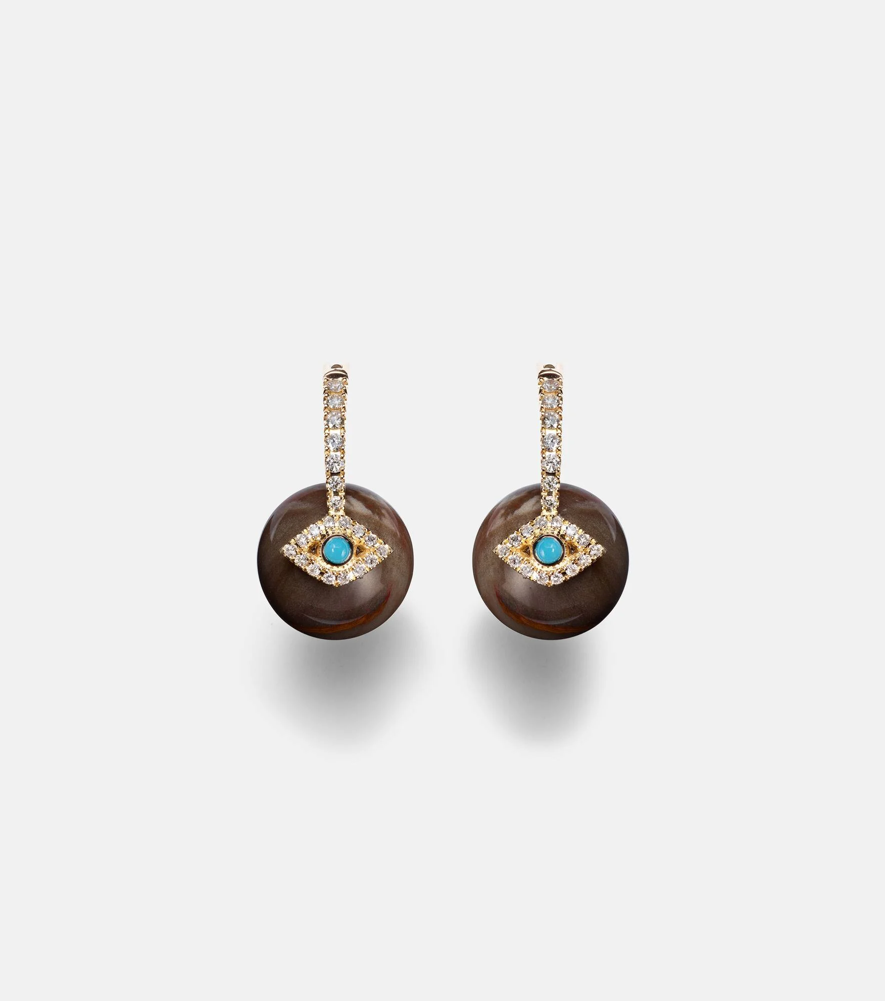 Evil Eye 14kt gold earrings with diamonds and turquoise