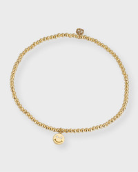 2mm Gold Bead Diamond Happy Face Charm Bracelet