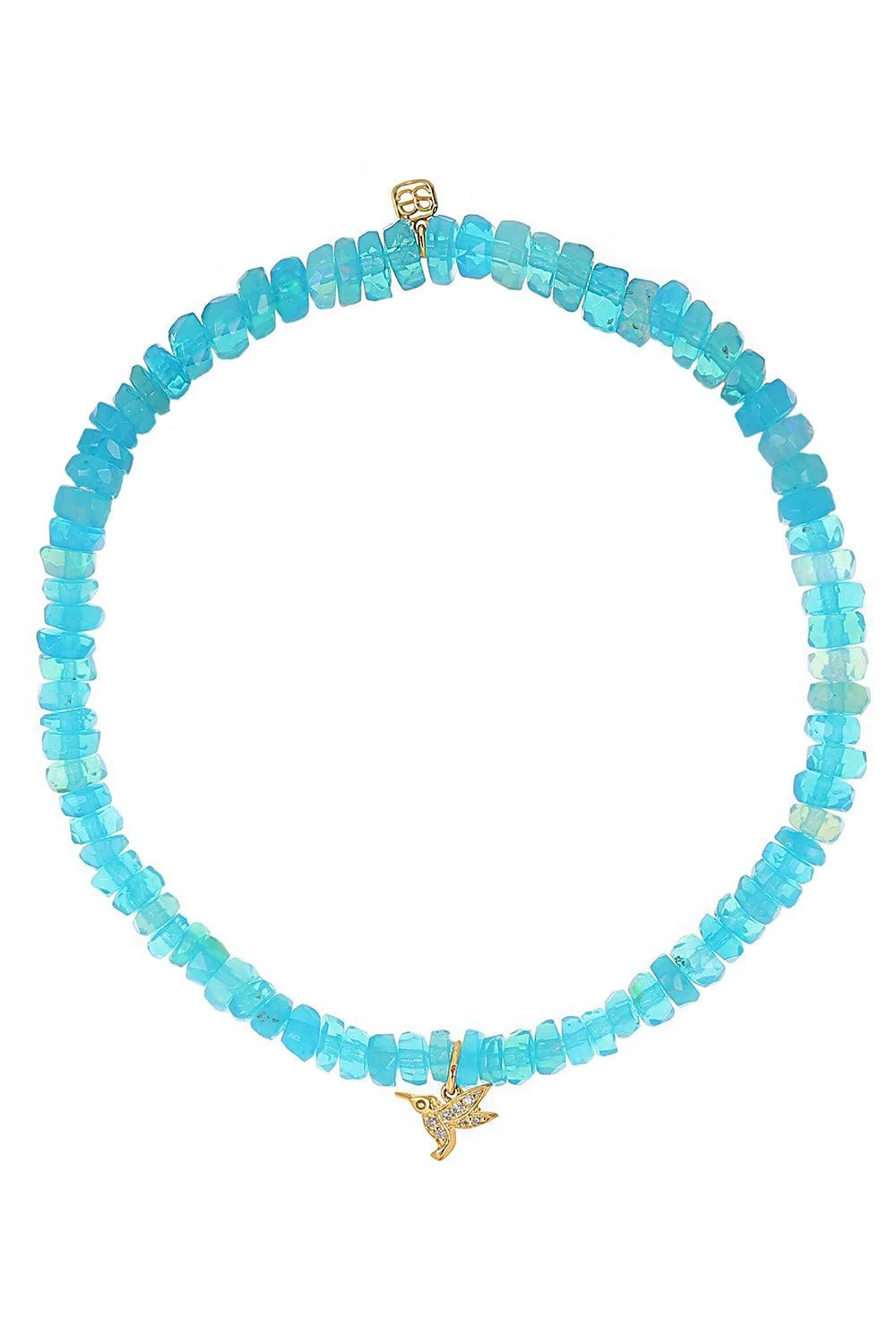 Blue Opal Tiny Hummingbird Charm Bracelet
