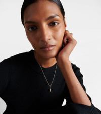 Product Details - Material: 14kt yellow gold - Made in Hong Kong - Stone I: diamonds, round-cut, pave setting, H color grade, SI2 clarity grade - Stone I carat total weight (ctw): 0.1151 - Item number: P00985289 Size & Fit - Adjustable length - Width 1mm-0.05" - Pendant length 22mm-0.85" - Pendant width 5mm-0.2" - Min. length 41,5cm-16.5" - Max. length 46cm-18"