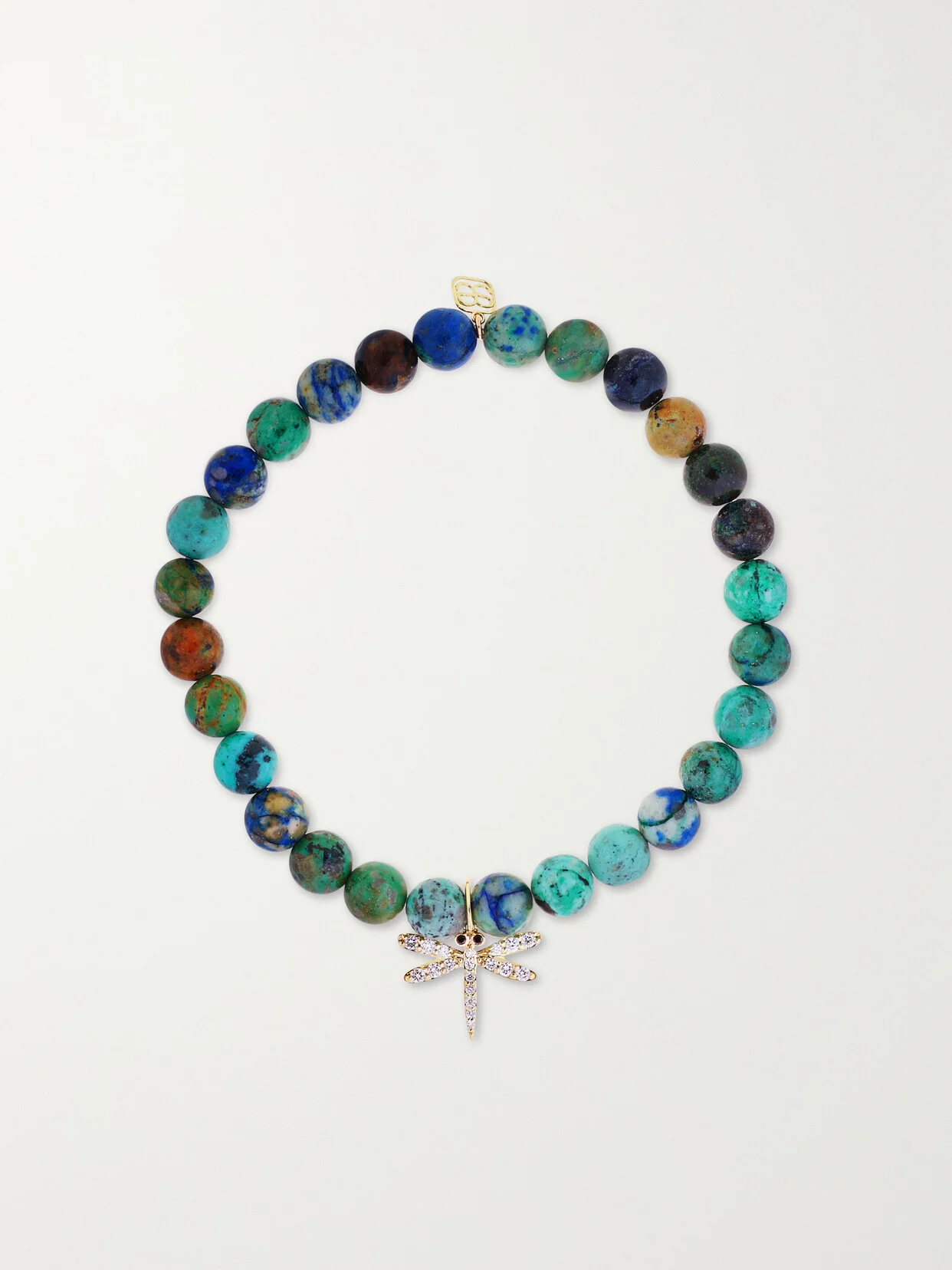 Dragonfly 14-karat Gold, Chrysocolla And Diamond Bracelet