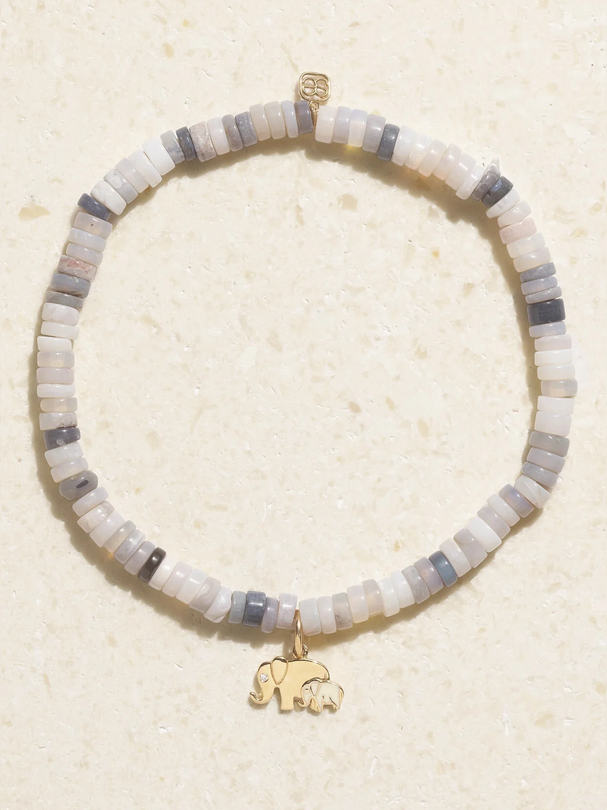 Sydney Evan always incorporates meaningful symbols into her jewelry, which is why they make great gifts for loved ones and friends. Strung with opal beads, this bracelet is made from 14-karat gold and centered with an elephant and its calf, inlaid with enamel and tipped with a single diamond. Take your cue from the label and stack it with similar styles.