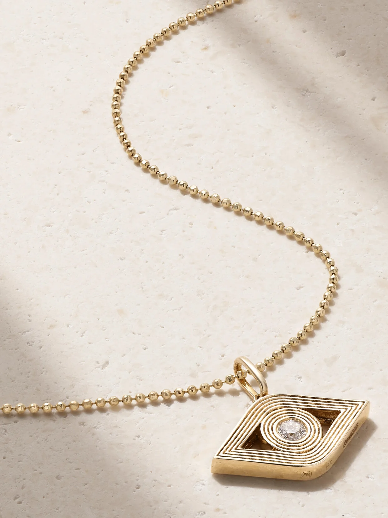 Sydney Evan enjoys the sentimental value of jewelry and works with popular talismans that carry their own message. This necklace is crafted from 14-karat gold and strung with an 'Evil Eye' pendant that's believed to have protective properties. Let yours sit against bare skin so the central diamond can catch the light.
