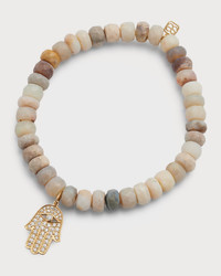 Faceted Australian Opal Rondelle Bracelet with Diamond Hamsa Charm
