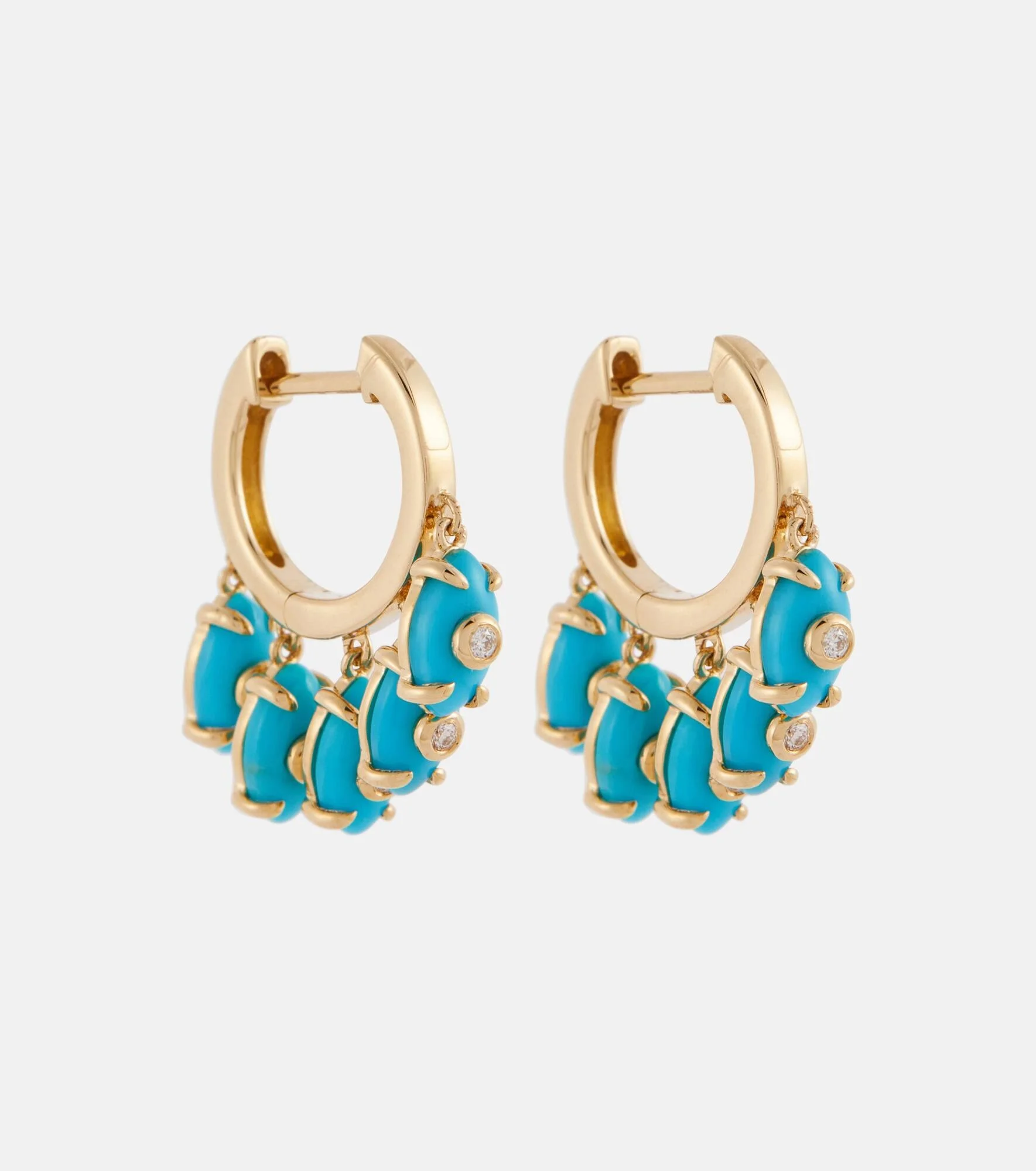 Made from 14kt gold, Sydney Evan's whimsical designs present a playful take on fine jewelry. The Huggie pair features suspended gemstones which are encrusted with tiny diamonds. Product Details - Material: 14kt yellow gold - Made in Hong Kong - Stone I: diamonds, round-cut, bezel setting - Closure: hinge - For pierced ears - Designer color name: Yellow Gold - Item number: P00802215 Size & Fit - Length 18mm-0.7" - Width 2mm-0.1" - Inner diameter 9mm-0.35"