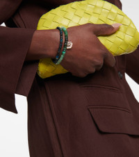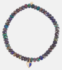 Sydney Evan updates its 14kt yellow gold Heart bracelet by reintroducing the miniature charm with a half lapis inlay and half 0.02ct round-cut pavé diamonds. Strung along the stretchy cord are an array of dark-toned Ethiopian opal beads and the 14kt yellow gold logo charm. Product Details - Material: opal - Pendant: 14kt yellow gold, white diamonds - Each piece is unique and color may differ slightly from those shown - Item number: P00796917 Size & Fit - Width 4mm-0.15" - Circumference 18,5cm-7.5" - Elasticated band - Pendant length 10mm-0.4" - Pendant width 6mm-0.25"