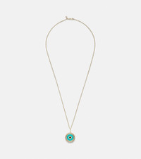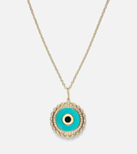 Large Evil Eye 14kt gold chain necklace with diamonds and turquoise