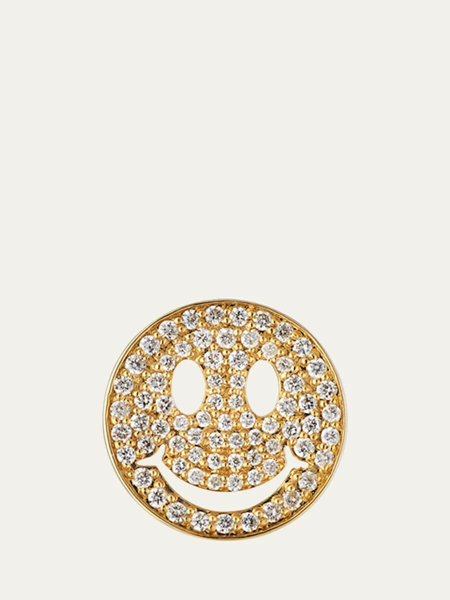 Happy face stud earring by Sydney Evan. 14-karat yellow gold. Pave white diamonds. 0.34 total diamond carat weight. For pierced ears. Imported. Item Note: Sold as a single earring. Online Inquiries: BGS21_Y3QW7| Store Inquiries: #2160824