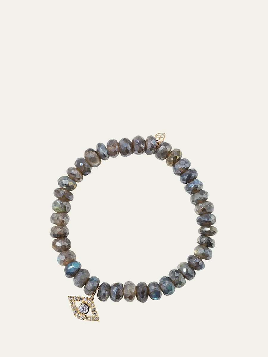 Sydney Evan bead bracelet. 14-karat yellow gold charms. Evil eye charm with diamonds. 8mm mystic labradorite rondelles. 0.372 total diamond carat weight. Approx. 6.25"L; 2.5" diameter. Stretchy; slip-on style. Imported. Online Inquiries: BGS21_Y5MM9| Store Inquiries: #4109097