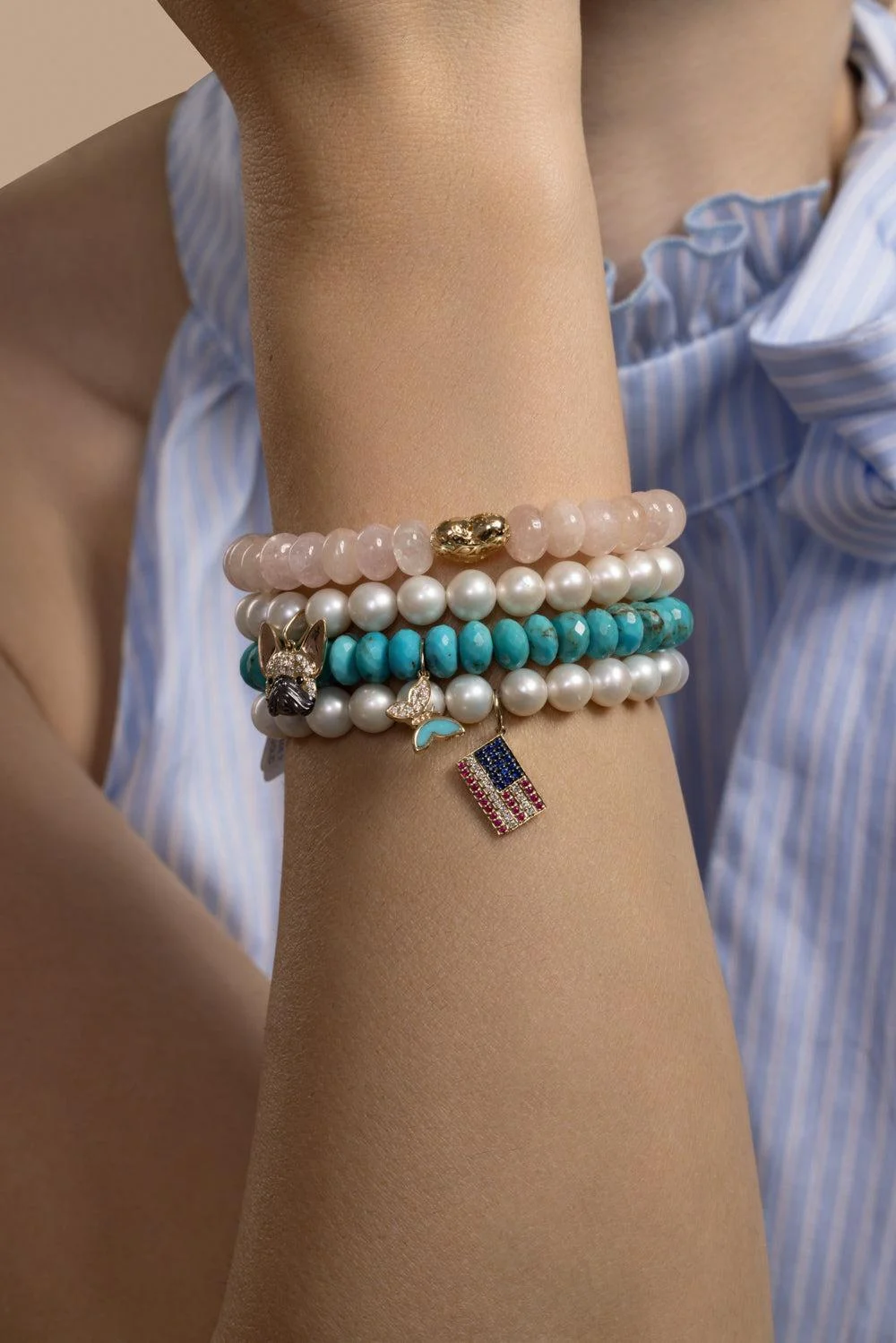 DETAILS AND INSIGHT Sydney Evan rose quartz puffy heart charm bracelet in yellow gold. 14K Yellow Gold Rose Quartz 8Mm Style CKE2191-Y871.8