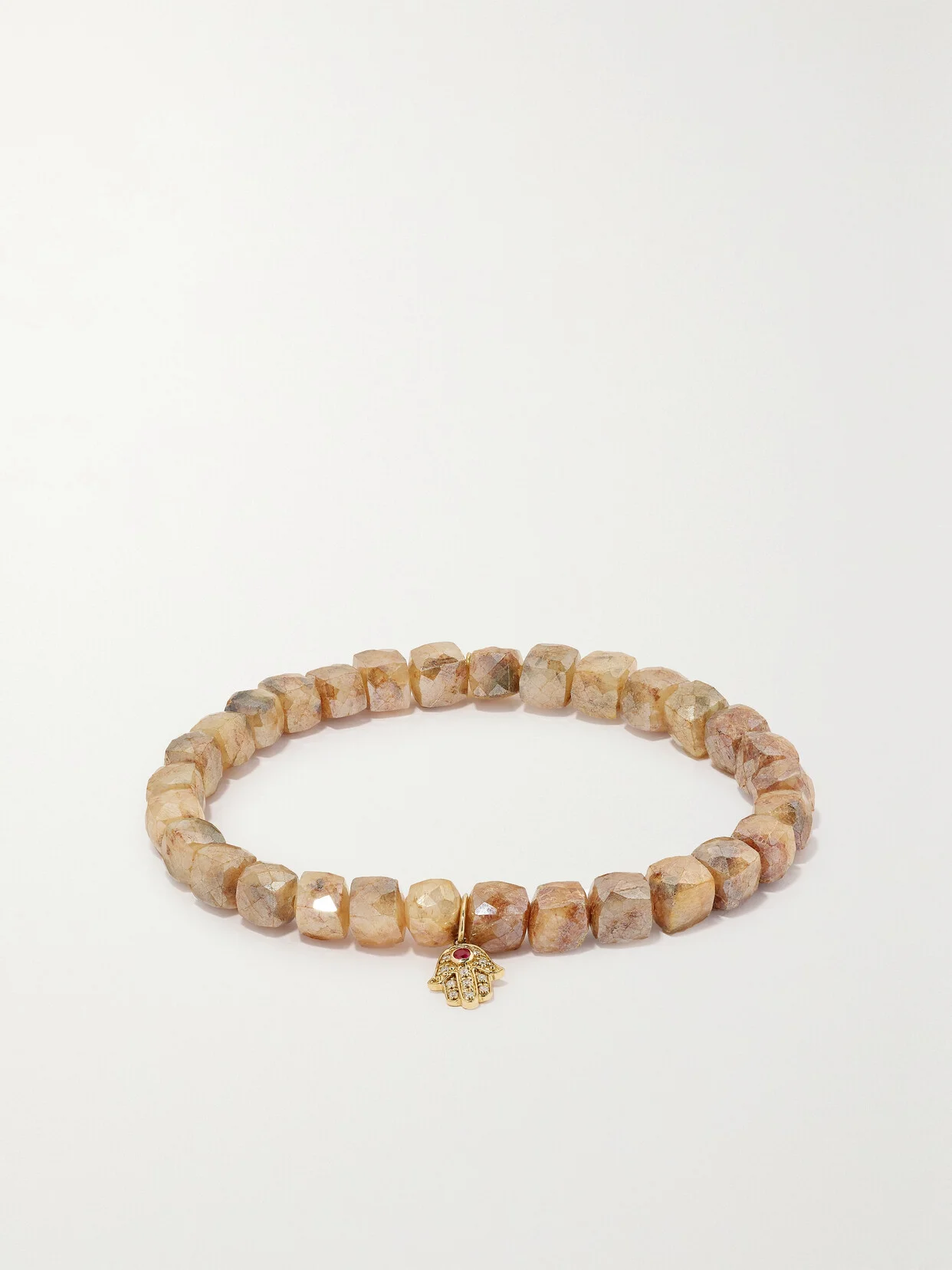 Sydney Evan's 14-karat gold bracelet has a diamond-encrusted 'Hamsa' charm that's thought to protect the wearer from evil and encourage luck and positivity - the brand's founder, Rosanne Karmes, is rarely seen without her own amulet. It's strung with chunky faceted quartz beads that'll go with plenty of different outfits.